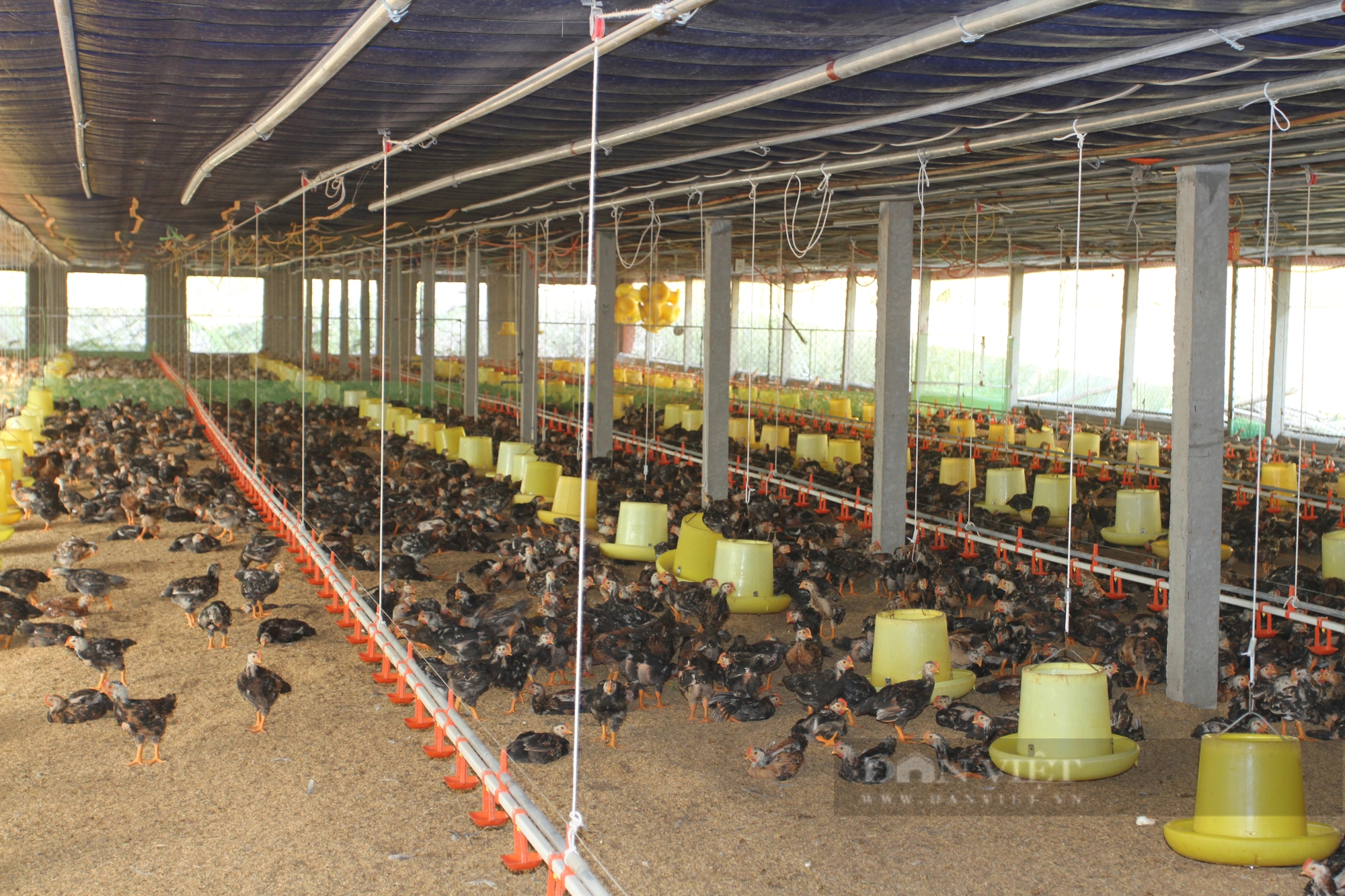 Với diện tích chuồng trại như vậy, anh Đông có thể nuôi tối đa khoảng 8.000 con gà. Trung bình mỗi năm anh vào 3 lứa gà, trong đó mỗi lứa khoảng 6.000 gà.